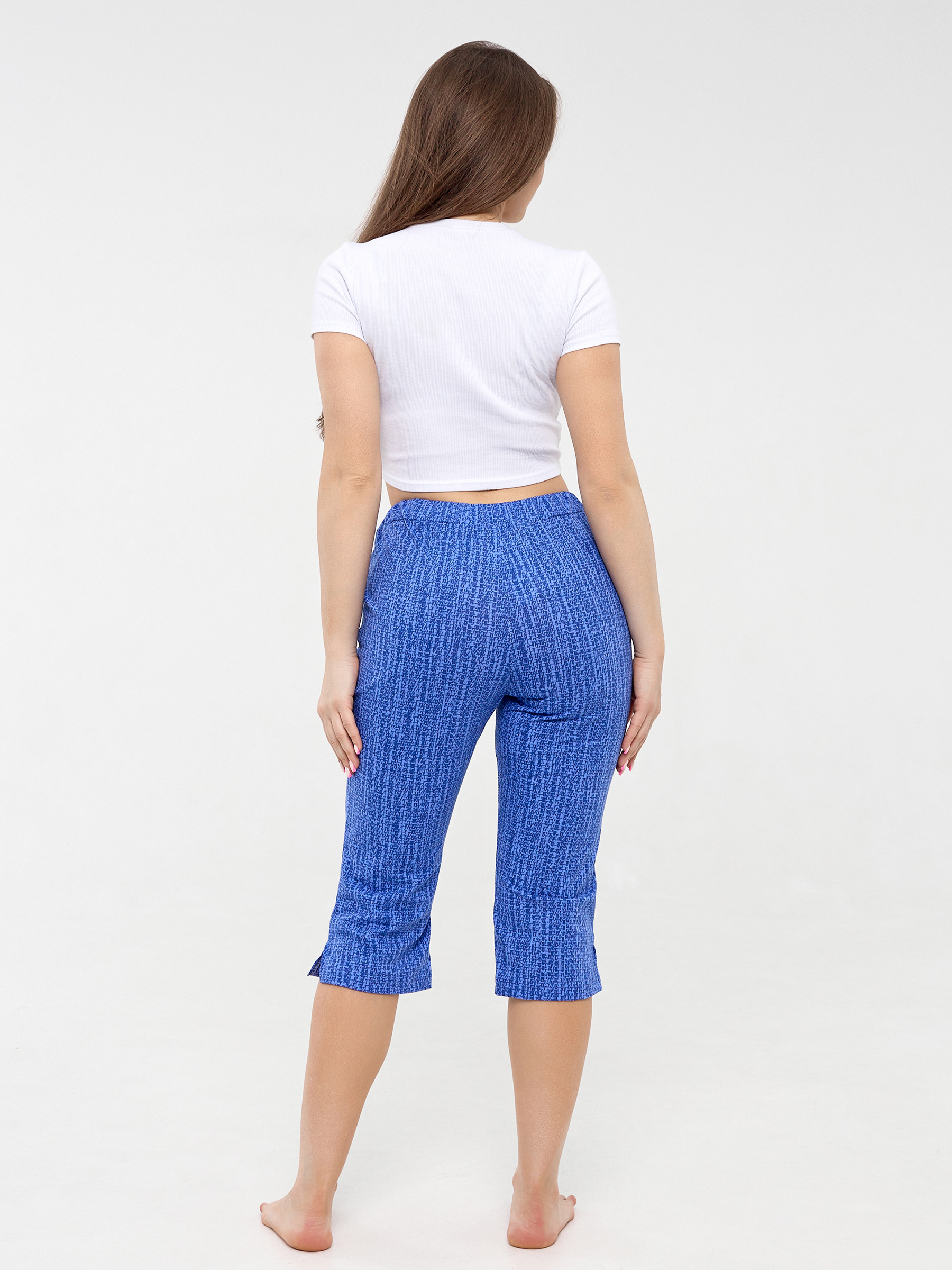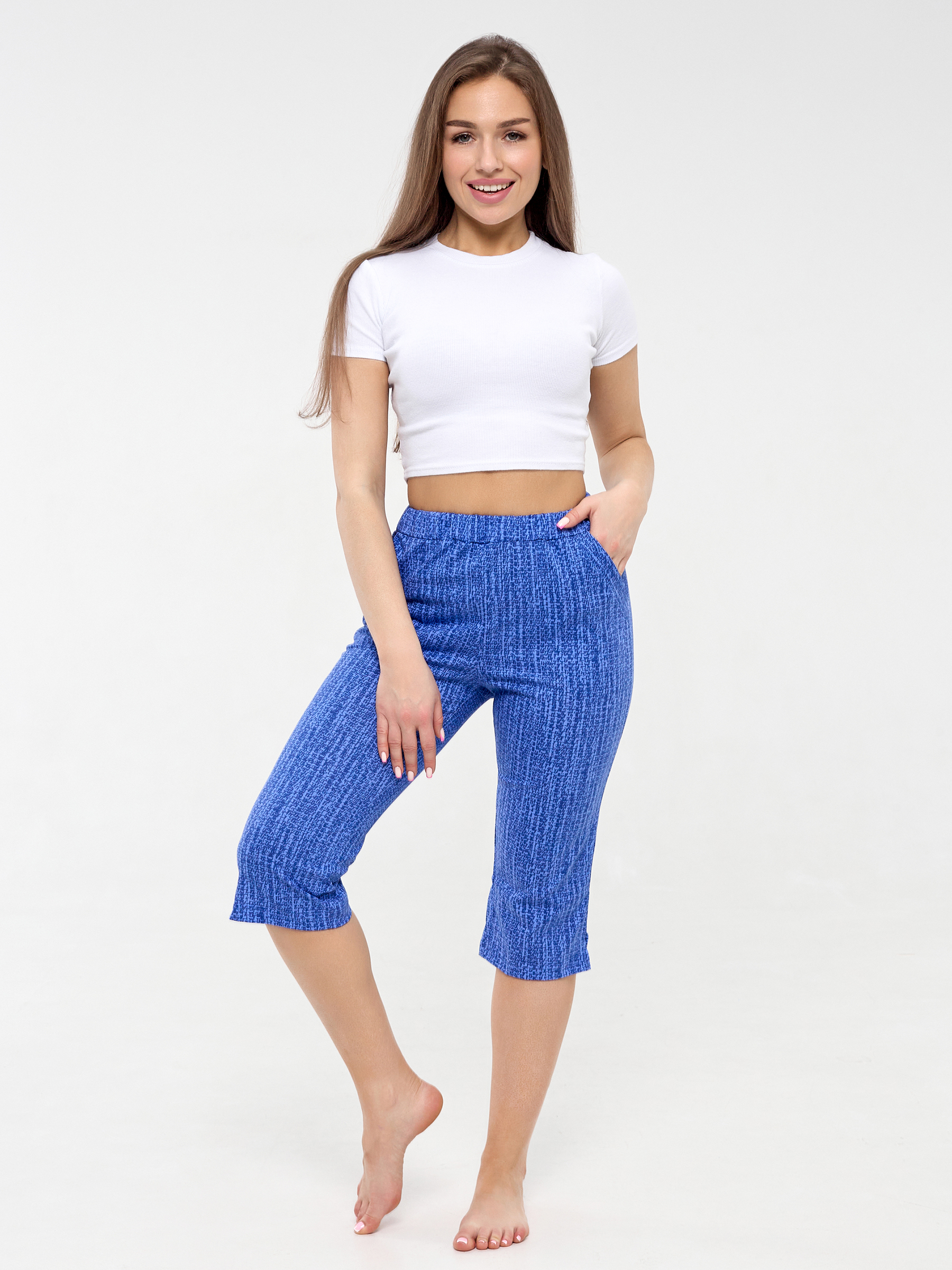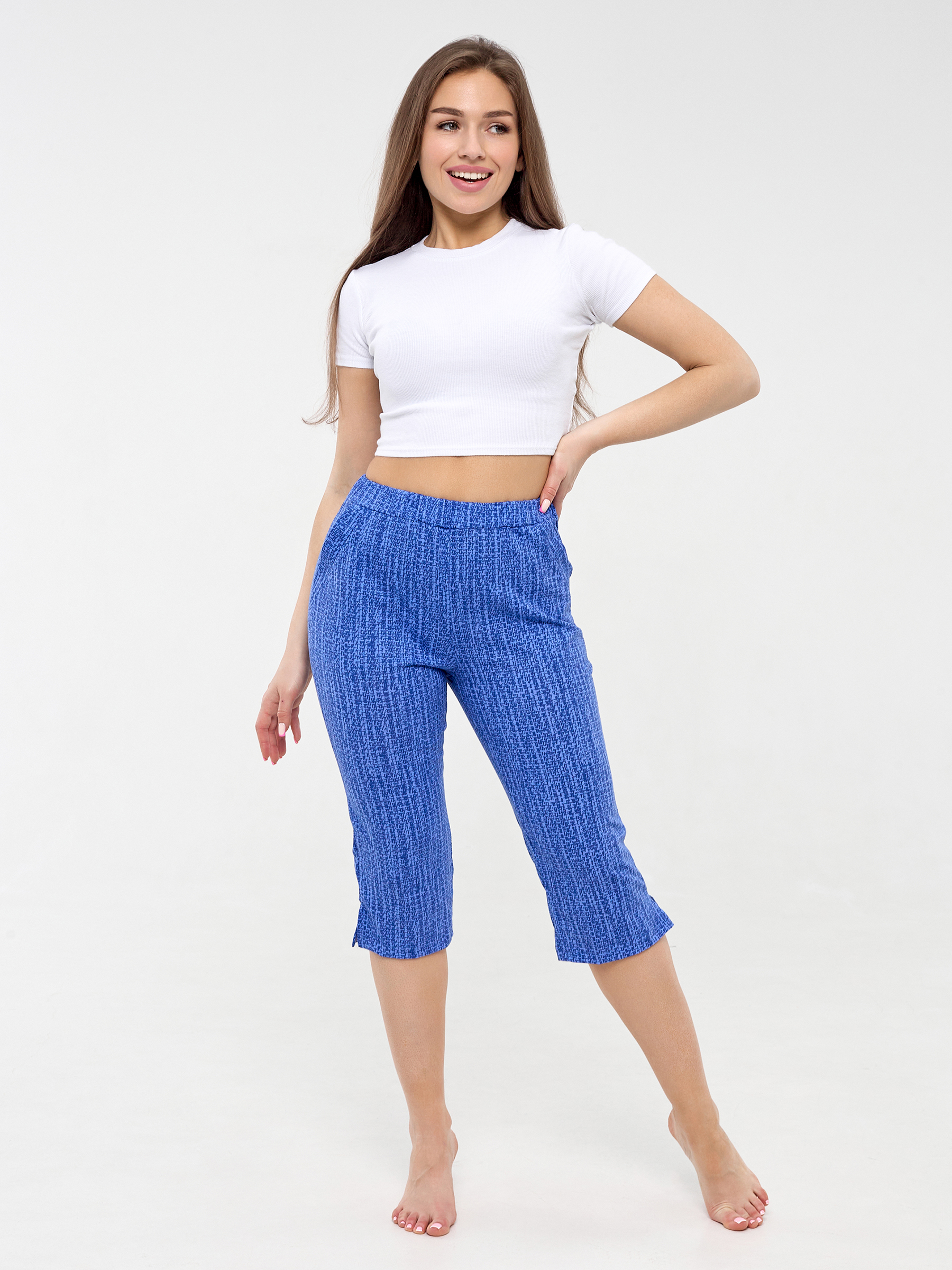 Капри летние изготовлены из мягкой, комфортной гипоаллергенной ткани кулирки состоящей из 100% хлопка, что дает возможность дышать коже, летом в них не будет жарко.