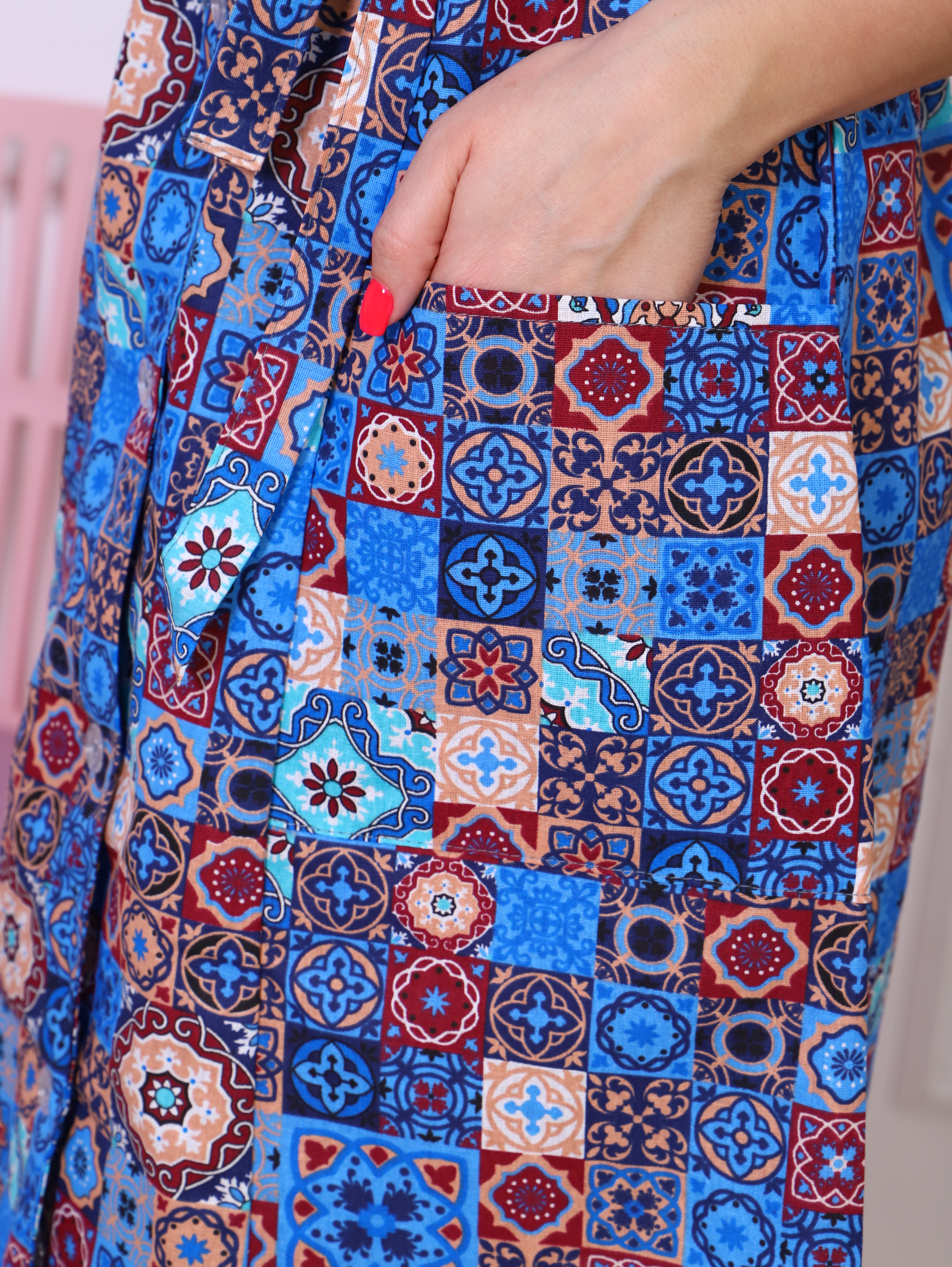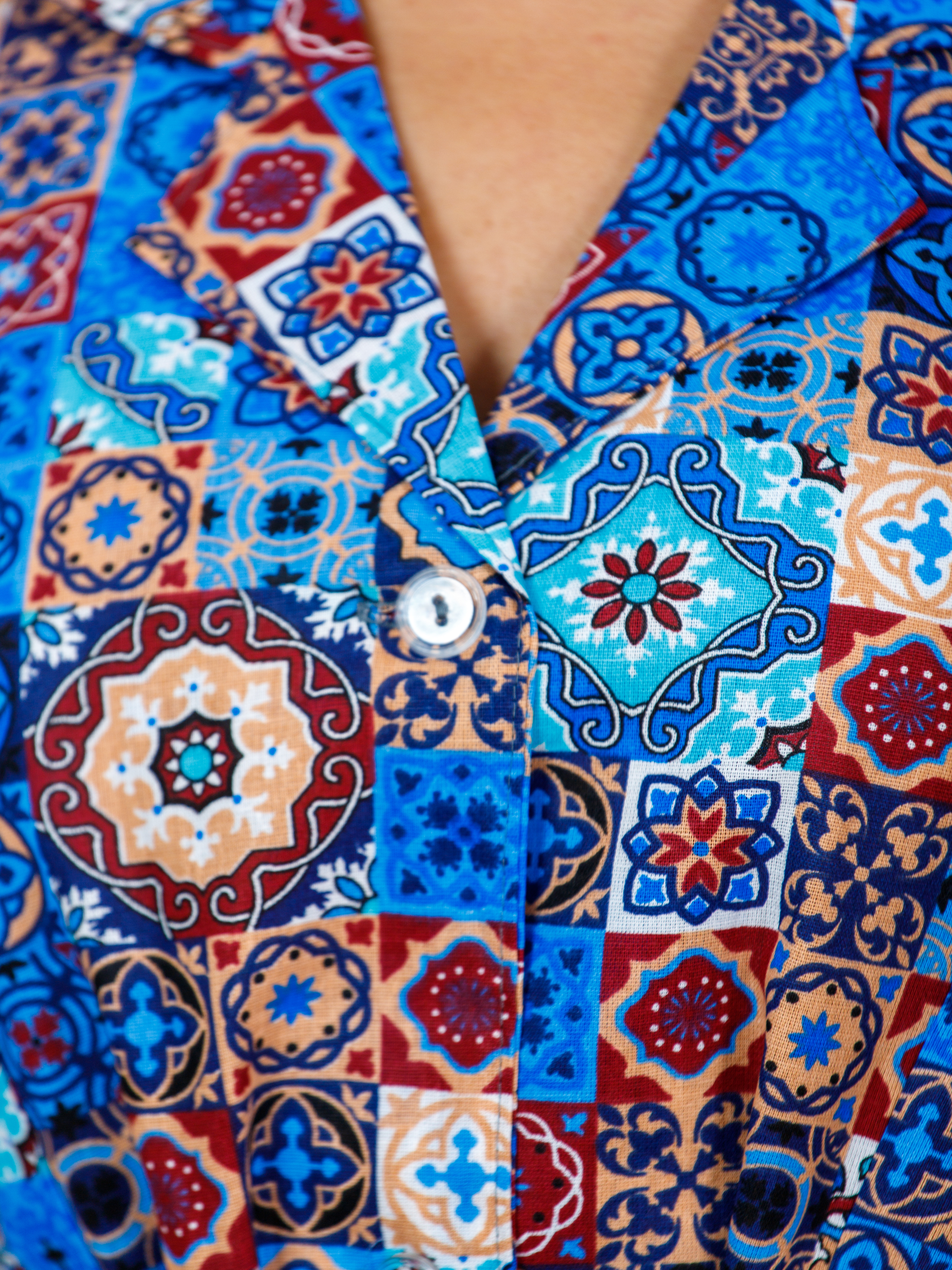 Халат домашний летний бязевый на пуговицах,  с накладными карманами и втачным коротким рукавом, выполнен из натурального хлопчатобумажного материала 100% хлопок.