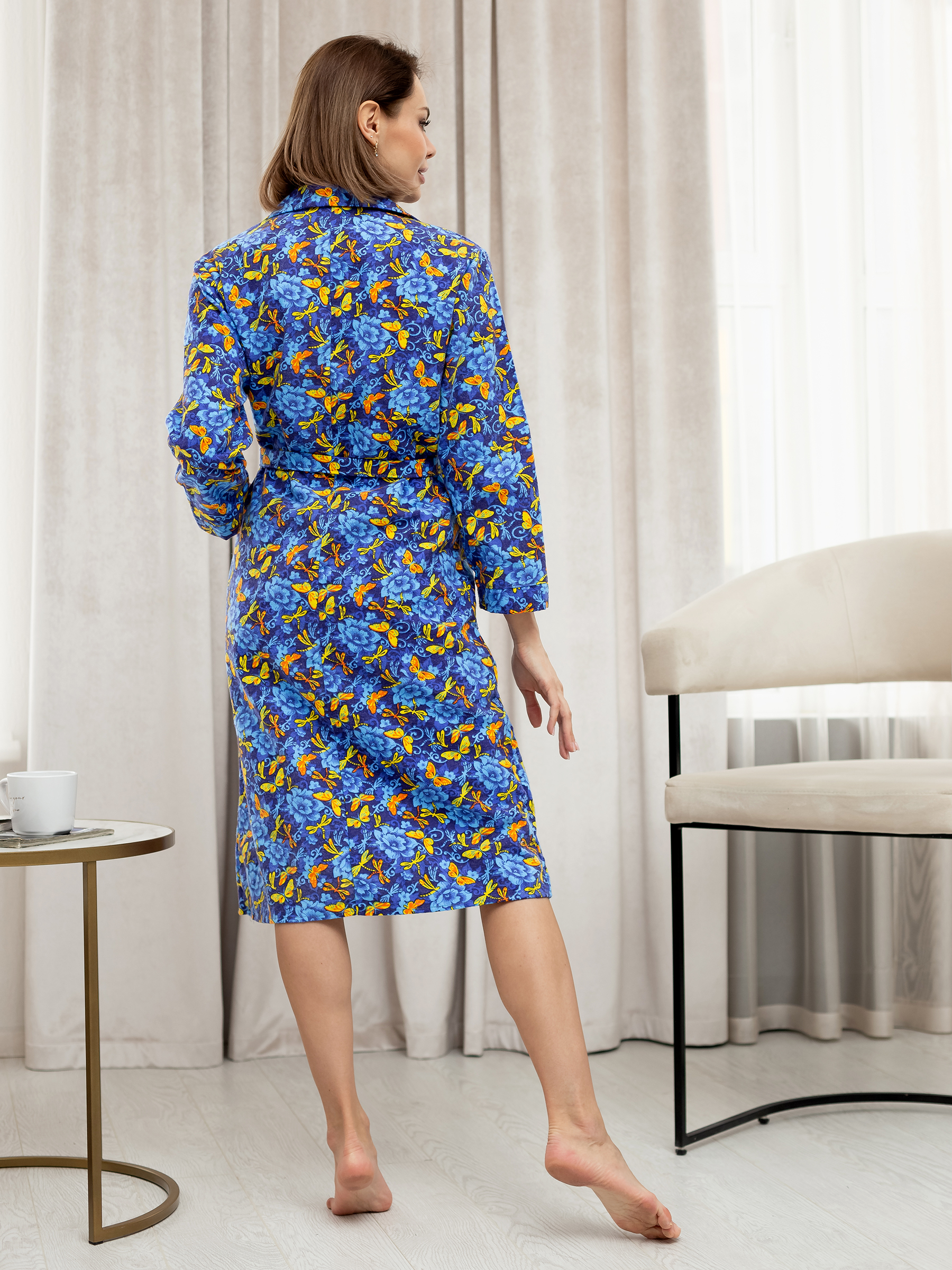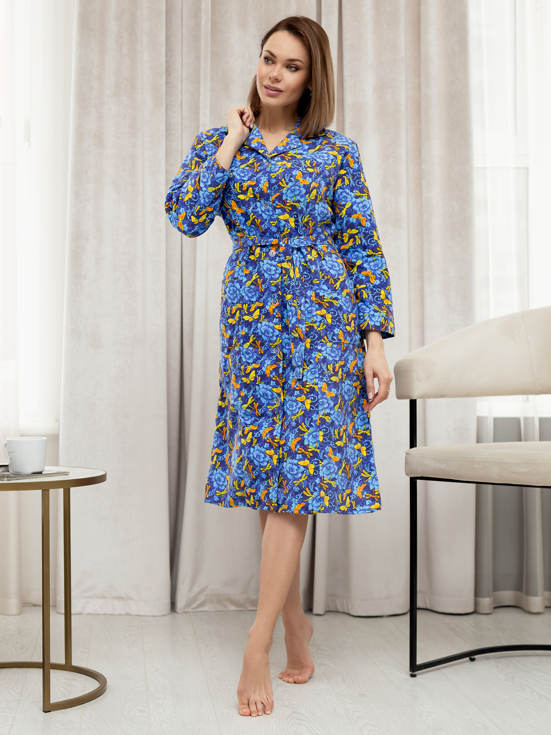 Халат байковый женский с длинным рукавом и накладными карманами на пуговицах.